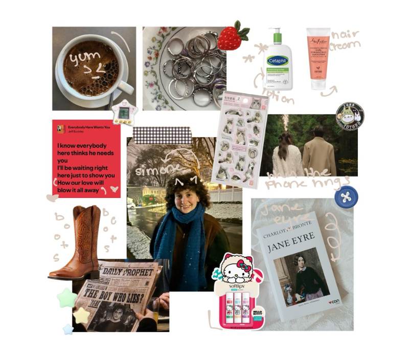 Faves: skinny scarves, vintage eagles merch, small sunglasses (in winter!!), ouai hair products, rhode peptide balm in ‘espresso’, henry rose body spray.
