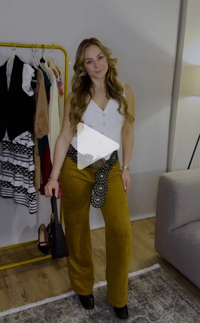 For this look, I wanted to lean into the luxurious textures of suede and leather while maintaining a contoured yet relaxed silhouette. I started with a white vest featuring light brown marbled buttons, adding a subtle contrast that enhances the earthy tones of the outfit.