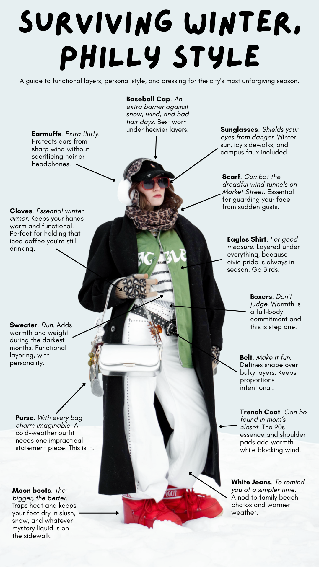 Surviving Winter, Philly Style IdentityHomepage Feb 15 Written By Leah Caiola Creative Direction: Leah Caiola Model: Miranda Martel Photographer: Emma Detwiler Production Assistance: Gabby Cohen Shop the Look Leah Caiola https://www.designandmerchandising.com/leah-caiola