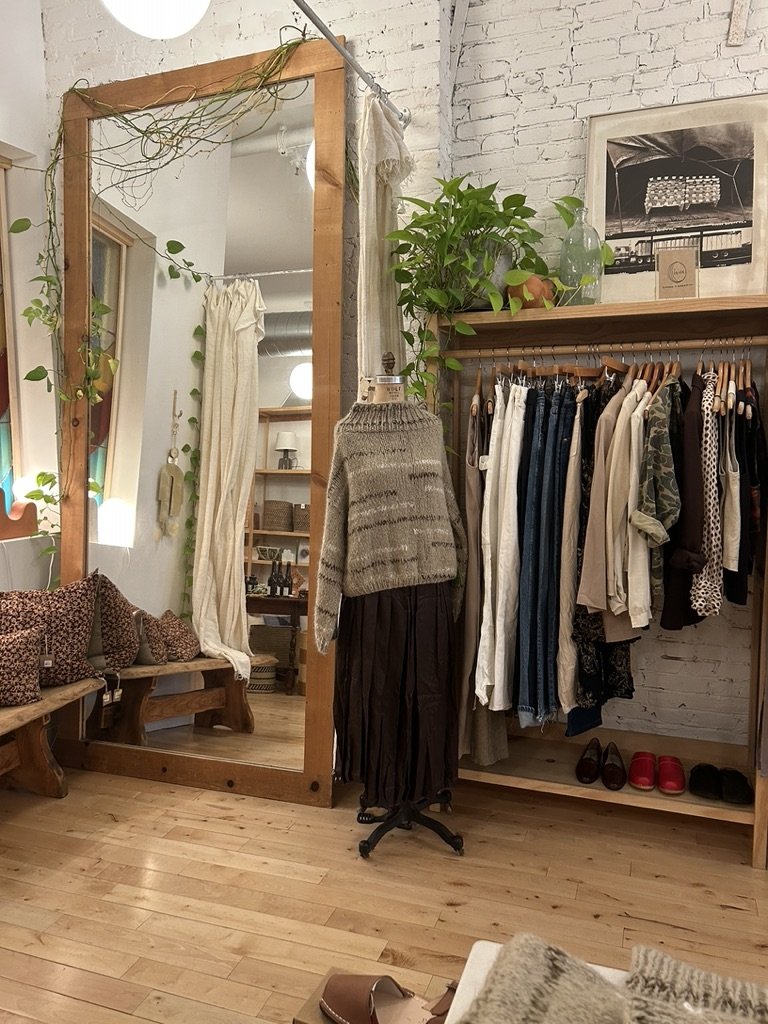 Retrospect Vintage can be found directly in the heart of Philly’s famous South Street shopping district. Retrospect is different from the other shops, as it is owned and operated by Goodwill, meaning the best donations received by Goodwill are handpicked and sent there. There they can be sold for higher prices and contribute to the store’s unique and stylish assortment. Much of the clothing matched my style and aesthetic: a huge denim assortment, beautiful lace tops, and colorful floral dresses. It was the only store where I felt compelled to try stuff on, selecting several pairs of jeans and a sheer white top. The prices were lower than expected, with secondhand denim jeans costing around $25. While I didn’t buy anything, my friend purchased a vintage, floral pair of pants that reminded me of a decades-old couch and a cream-colored crocheted poncho, spending $40 on the two pieces. I genuinely loved the product assortment at Retrospect and could have spent hours browsing the racks of cozy sweaters and colorful home décor.